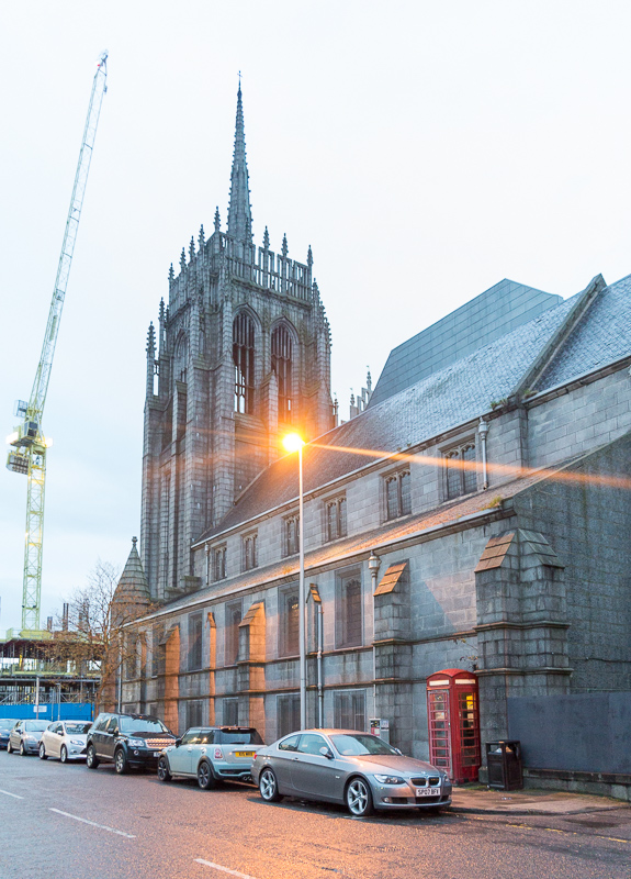 En se ballandant dans les environs de marischal colege, helas devenu l'equivalent des services municipaux, la partie "magique" des universitées s'est eteinte, et l'eglise accolée aux batiment, une des plus anciennes d'Aberdeen (première photo) est menacée de destruction.